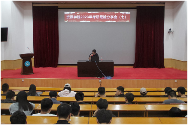在四号楼报告厅举办“交流考研经验 助力资源研途”考研经验分享会第7期:专业择校与复试调剂。分享会由张宇和缪鹏飞两位考研上岸优秀毕业生担任主讲,学院2024届有考研意向毕业生参加。