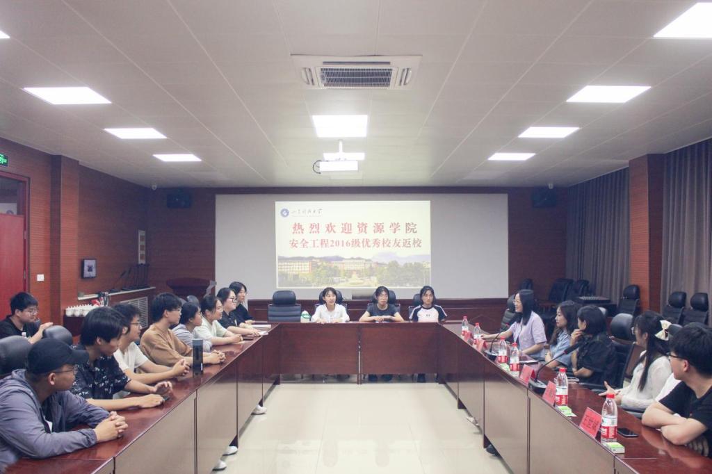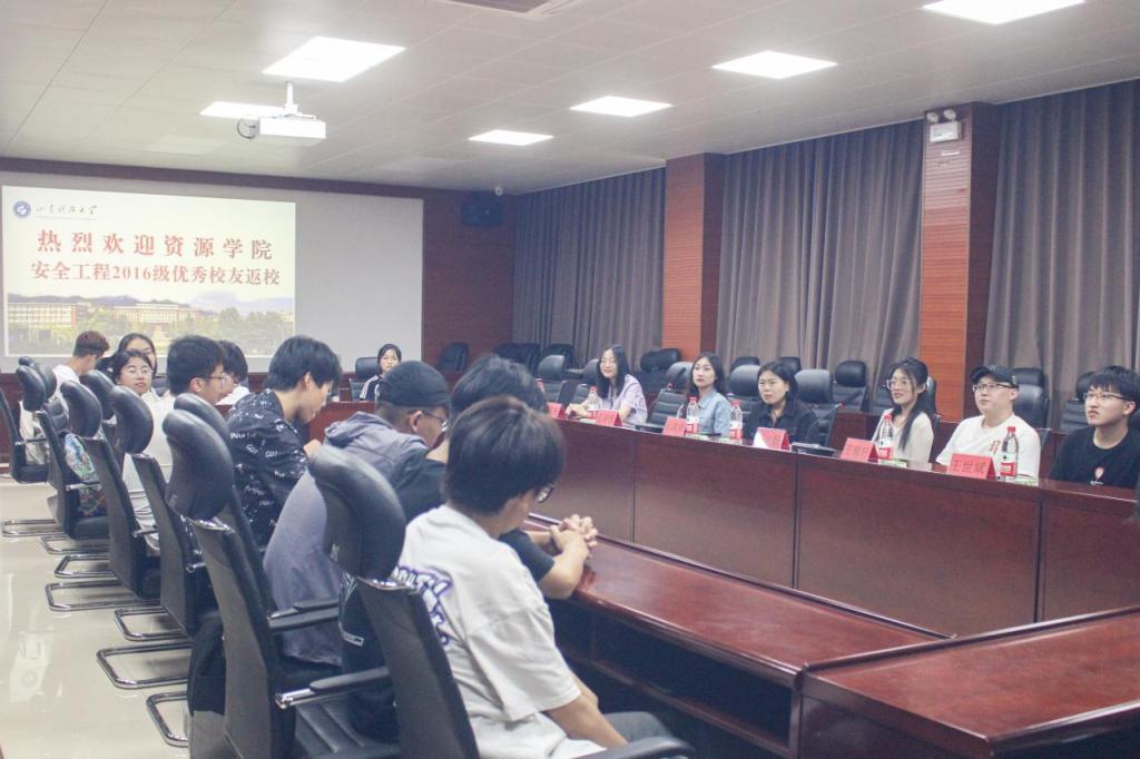 在二号楼201举办校友职业生涯规划经验分享会。资源工程系邀请石汶夕、陈雪畅、王妍、王稼轩、王泽明、王世斌等6位2016级安全工程专业优秀毕业生担任分享嘉宾,学院2021级防灾减灾科学与工程专业学生代表参加。