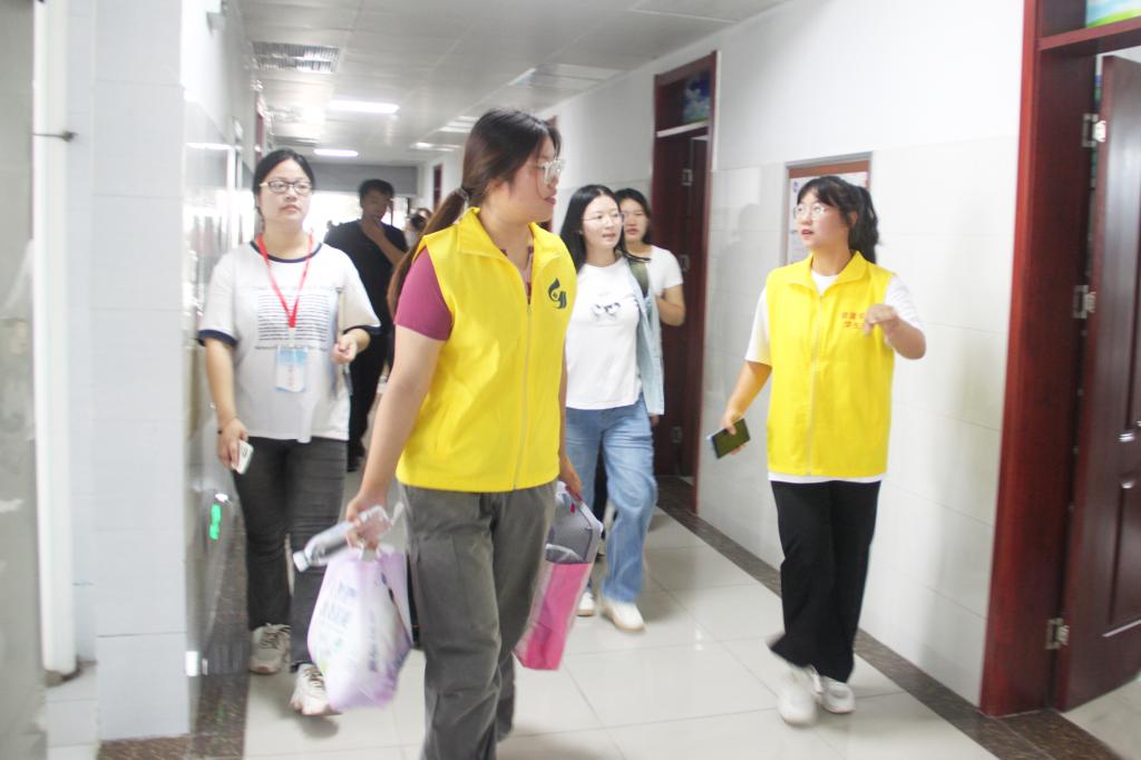 礼堂前、宿舍楼内70多名志愿者为新生们搬运行李、指路答疑,协助新生完成报到程序,一抹抹鲜艳的黄色志愿马甲穿行于校园中,周到热情的服务让新同学感到回家的温暖。