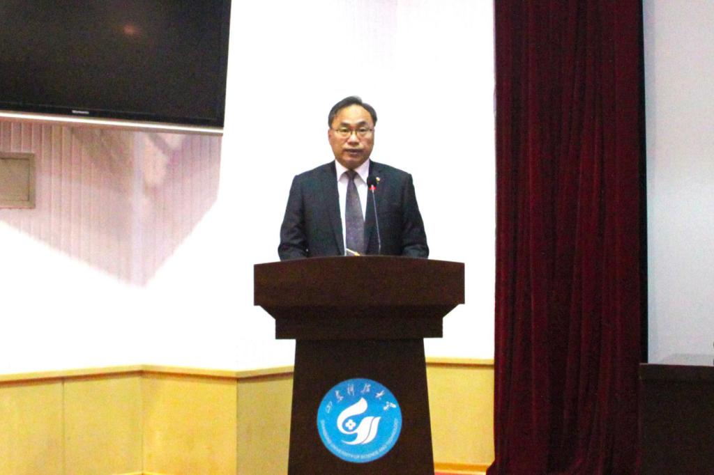 启动仪式结束后,酷爱成人网 党委副书记兼泰安校区党工委书记、管委主任王少鹏为“复兴大讲堂”作第一期报告。(文:张娜 曹晨箫 图:贾令沛 苗润)