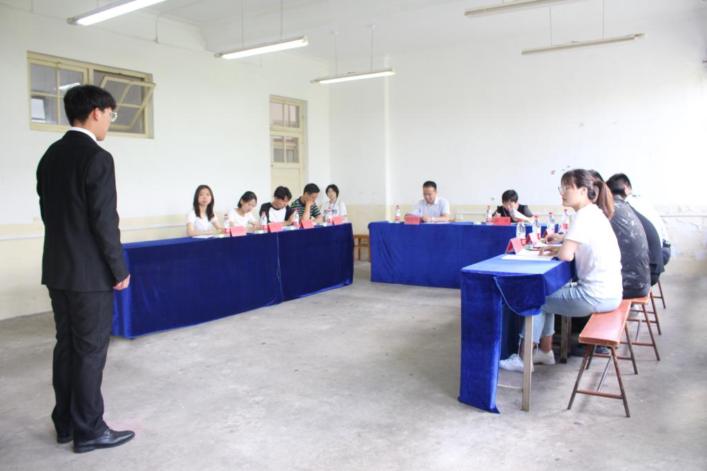 在3#506举行第二十三届学生会主席团换届竞选面试。学院党委副书记兼副院长程家国、团委书记洒艳、学院辅导员尹发利、王淦及第二十二届学生会主席团成员担任面试官,共有11位候选人参加。