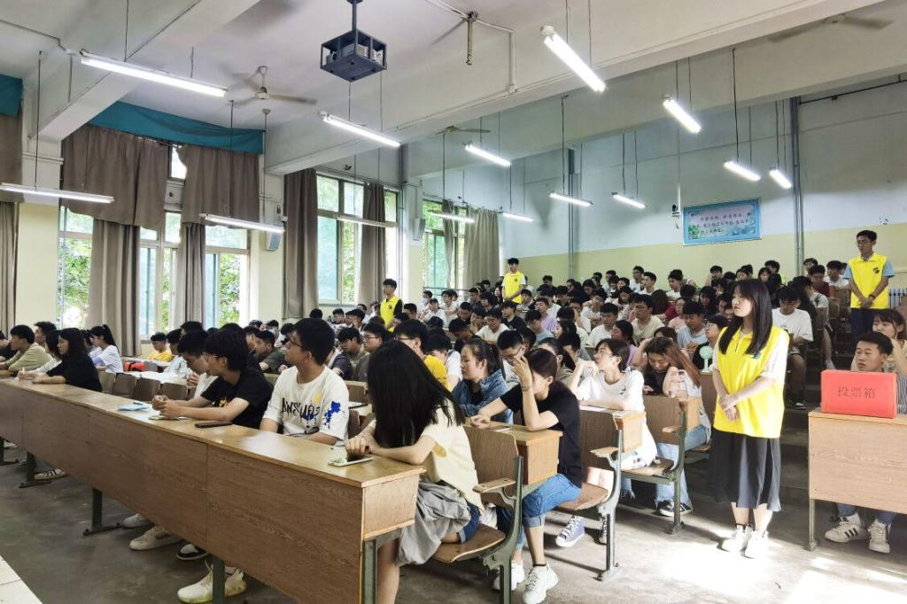 会议传达了本次学生代表大会投票选举方法与要求,审核通过了总监票人、监票人、计票人建议名单。姜自健宣读了经前期酝酿提名和民主推荐确定的26名代表候选人名单。随后,工作人员清点了到会人数并发放选票,参会人员在填好选票后依次投入票箱。