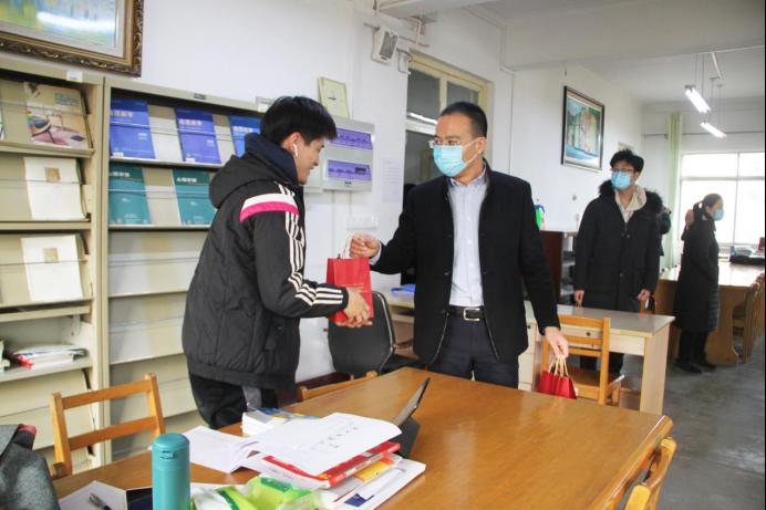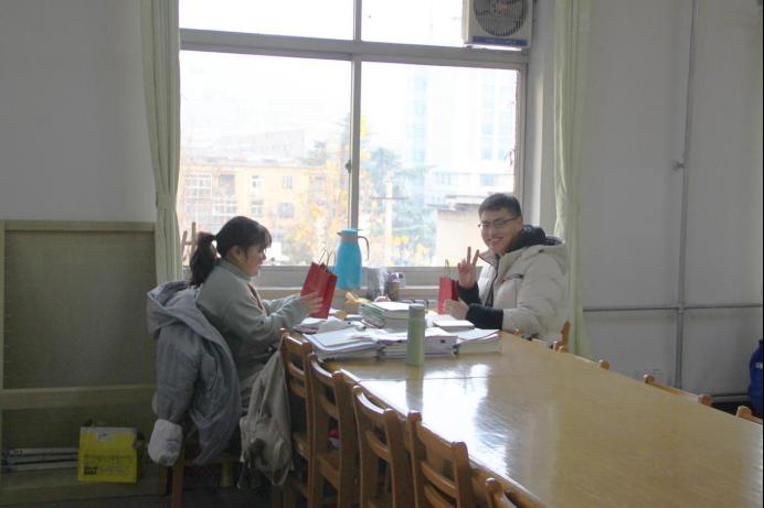 “你们绝非孤军奋战,还有老师为你们保驾护航。” 毕业班辅导员尹发利进入考研自习室,为备考学子送上福袋。