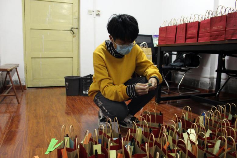 “还有多少祝福,我们一定送出;还有什么需求,我们一定满足”,辅导员老师亲力亲为,贴心指导工作人员将礼物装进福袋。手中所拿的,不仅仅是礼物,更是美好的祝福与期盼。