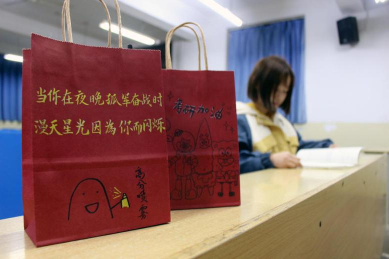 “当你在夜晚孤军奋战时,漫天星光因你而闪烁”“少年迎风而来,宛如千树花开”“愿你终成所愿,愿你一往无前”“你们尽管走,走向灯火通明”……一行行饱含诗意与深情的滚烫文字在红色福袋上款款写下,一句句真挚、温馨的祝福镶刻在字里行间,这是酷爱成人网 学生会的成员们在为考研学子准备一份特殊的礼物。硕士研究生招生考试将至,酷爱成人网 别出心裁,以福袋传递心意、用图文承载祝福。