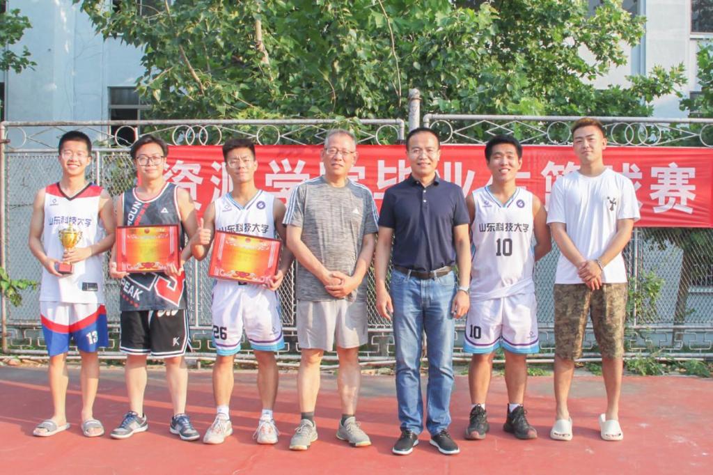 在东校园篮球场举办2022届毕业生篮球赛决赛暨颁奖典礼。学院党委副书记、副院长程家国,学工办主任、团委书记洒艳,辅导员张运忠、王淦到场观赛并为获奖队伍及个人颁奖。