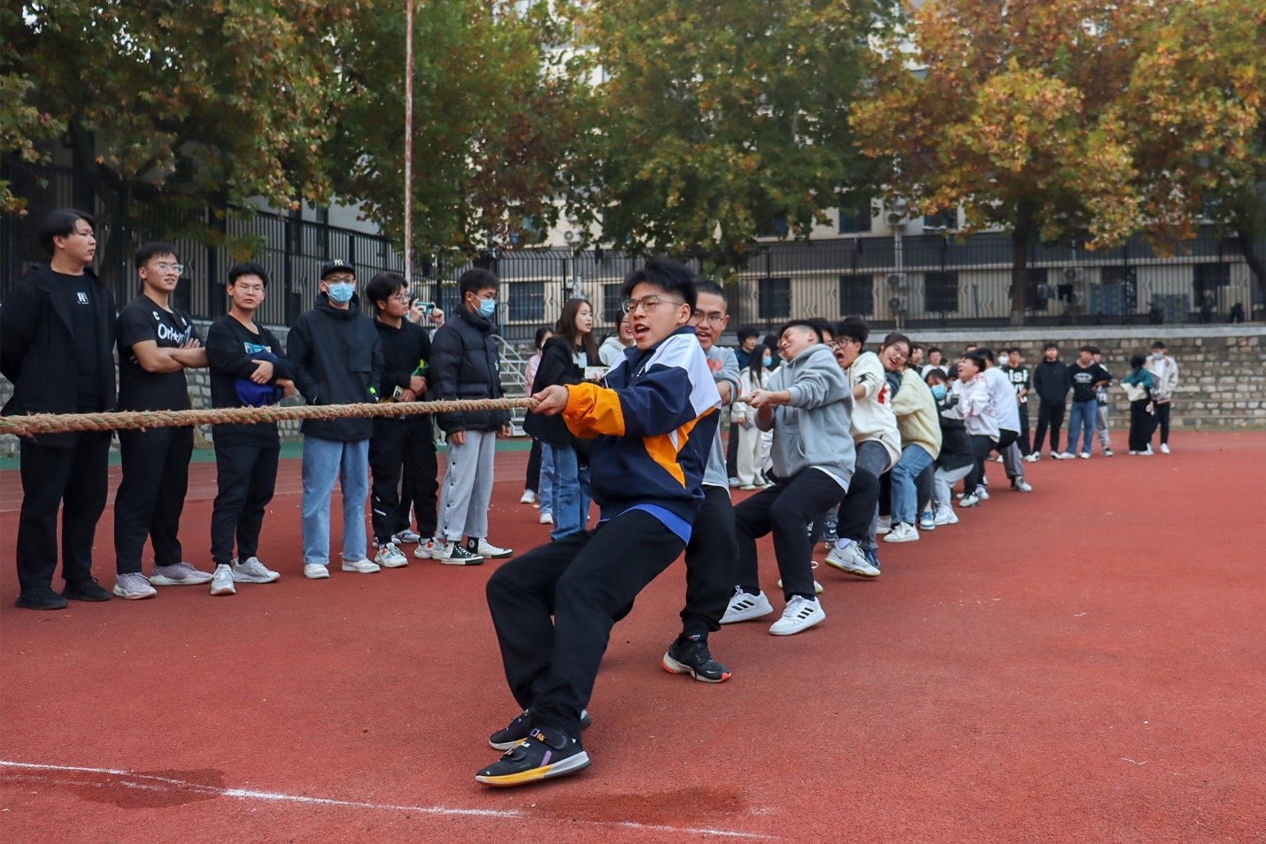 举办的“青春竞技场”大学生文体素质引导系列活动——第六届班级拔河比赛在东校园田径场火热进行中。学院各年级班级踊跃报名,共有18支队伍参赛。