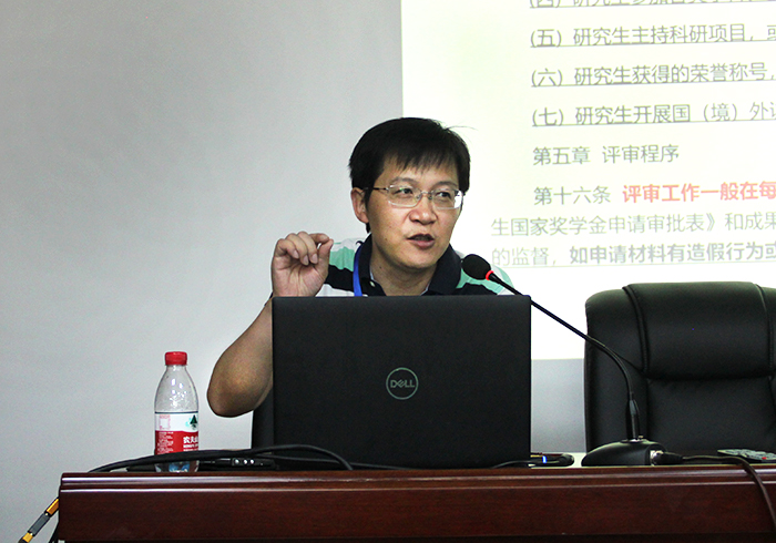 本次课程主要讲述学术论文撰写和奖学金评选相关规定。刘家友首先为同学们介绍了硕士学位论文的重要性,论文的抽检方法、抽检时间以及论文不合格在国家、山东省和学校产生的影响和后果。随后,刘主任提及盲审论文的相关内容,提醒同学们论文撰写要有创新,结论要符合常识,格式要规范等细节。他强调,写论文时切勿造假、抄袭、代写,并通过一些具体实例告诫同学们不要以身试法。他还为大家介绍了酷爱成人网