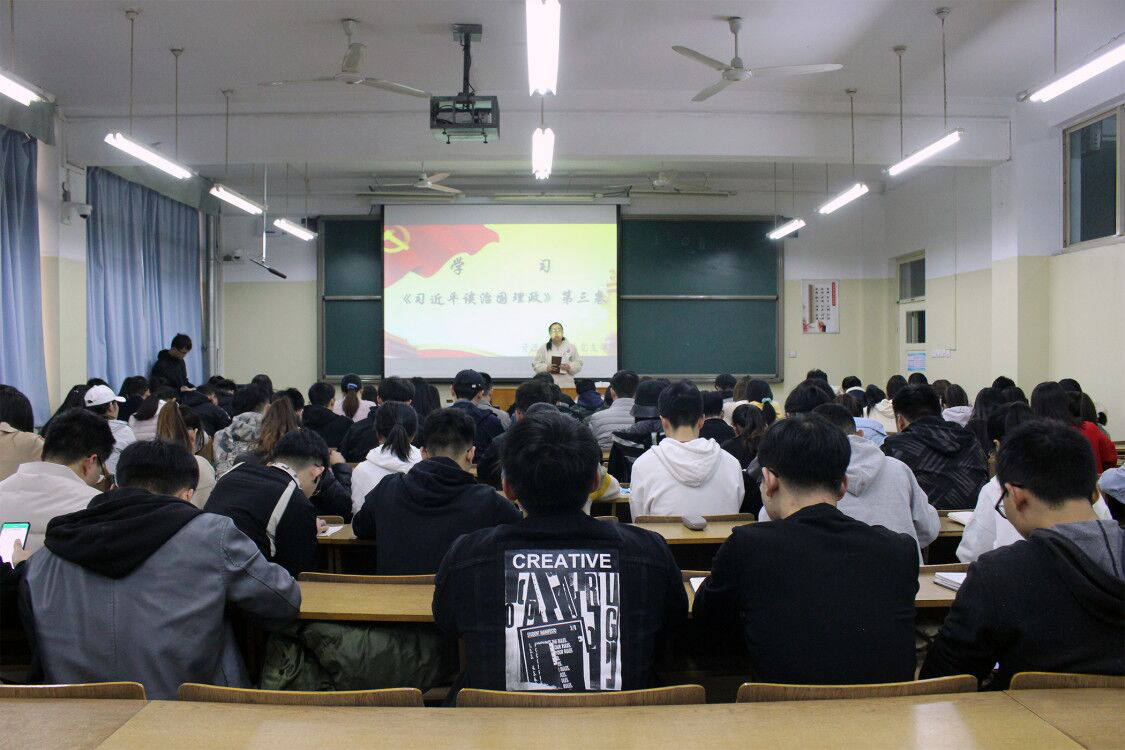 在5#103举办“学习习近平总书记的治国理政”主题党日活动,开展集中学习。学生第一党支部书记卢业美担任活动主讲人,全体学生党员参加。
