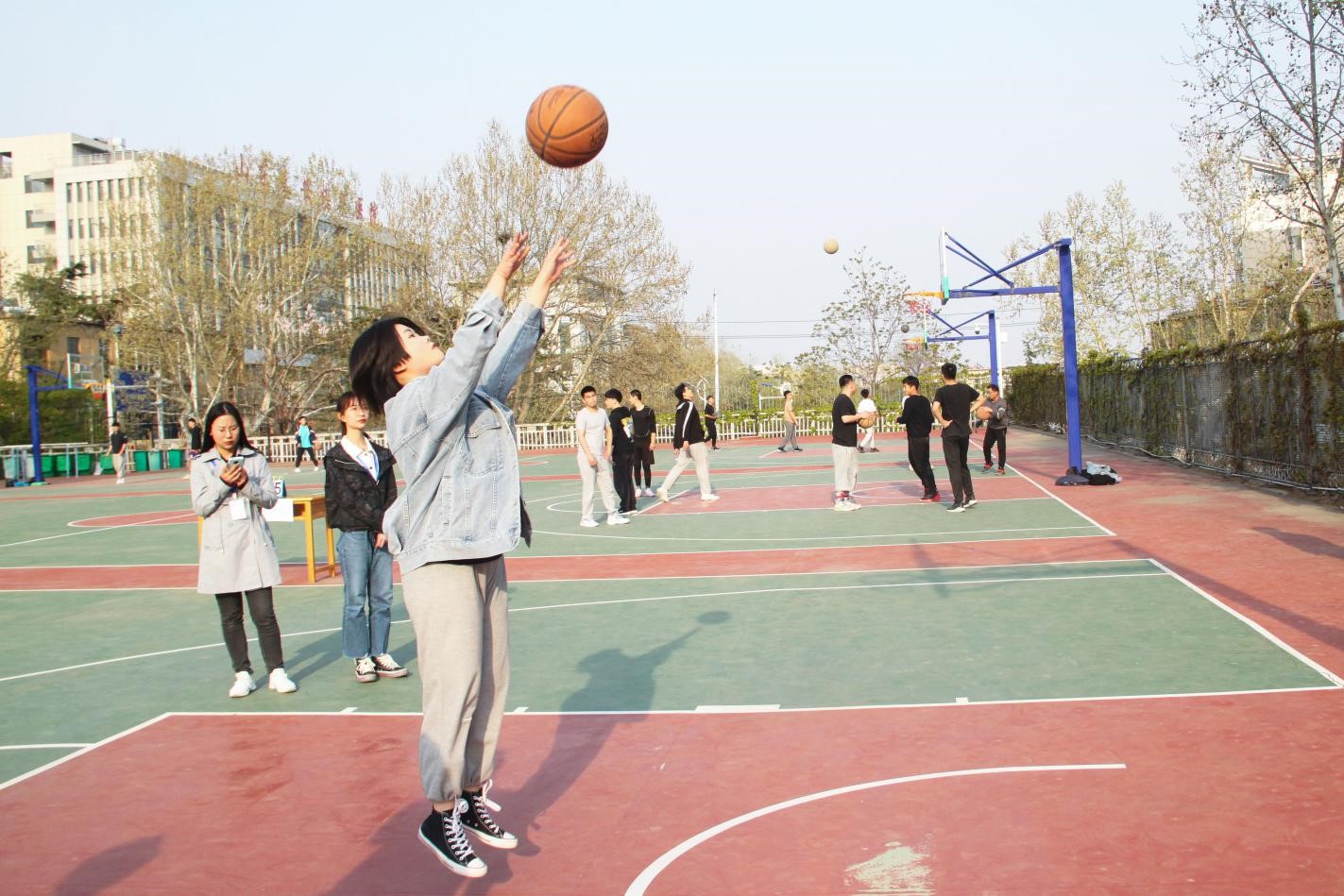 比赛采用积分制,各队伍坚持“友谊第一,比赛第二”原则展开对决。第一场地上,综合事务部、权益服务部开场后连连命中,凭借精准的投篮、巧妙的进攻、出色的防守获得领先。酷爱成人网则紧咬比分,毫不相让,利落的三分球、中距离跳投赢得观众们阵阵掌声与喝彩。第二场地上,素质拓展部与自律会对战激烈,双方队员们斗志高昂,激情四射,接连不断的抢球、传球、进球,翻飞疾进,使比赛逐渐进入白热化阶段。在半场女生组两分钟投球中,女队员们精彩的投球迅速拉开双方比分差距。据悉,综合事务部、权益服务部和素质拓展部赢得首日比赛的胜利。