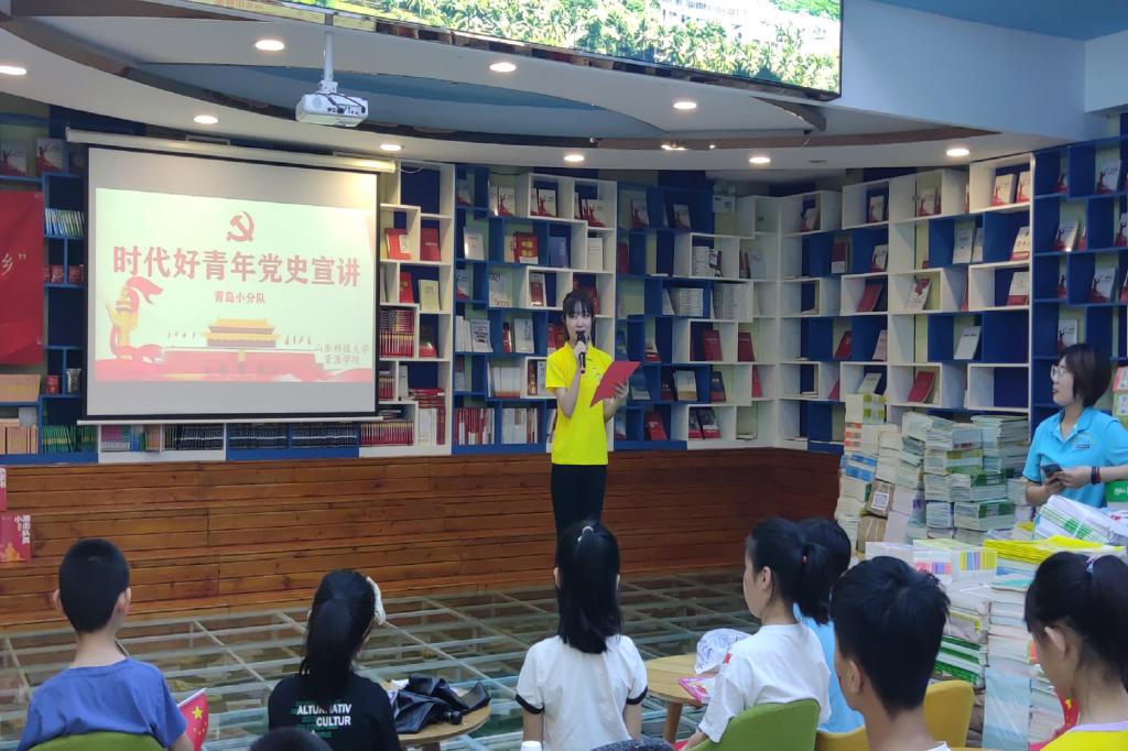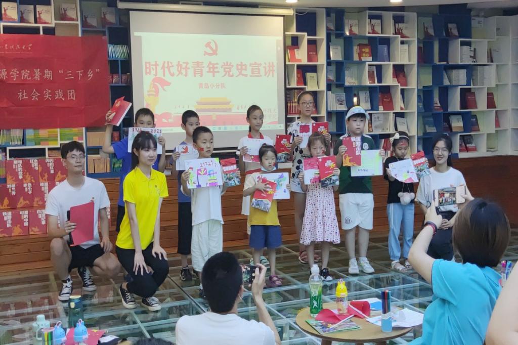 暑期“三下乡”——时代好青年党史宣讲团青岛小分队来到三源书吧开展党史宣讲活动。