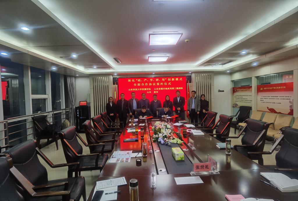 与山东煤田地质局第三勘探队正式签订了校企全面合作协议,双方在“政、产、学、研、用”等领域开展全面深度合作。