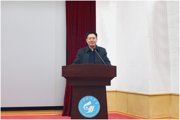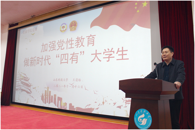 院长王清标在四号楼报告厅为学院第35期入党积极分子讲授“加强党性教育,做新时代‘四有’大学生”专题党课。
