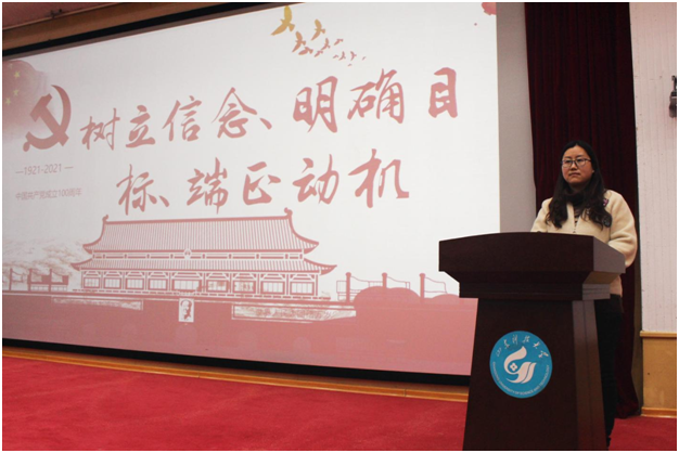 11月18日,酷爱成人网 学生第一党支部书记卢业美在四号楼报告厅为学院第35期入党积极分子讲授“树立信念、明确目标、端正动机”专题党课。