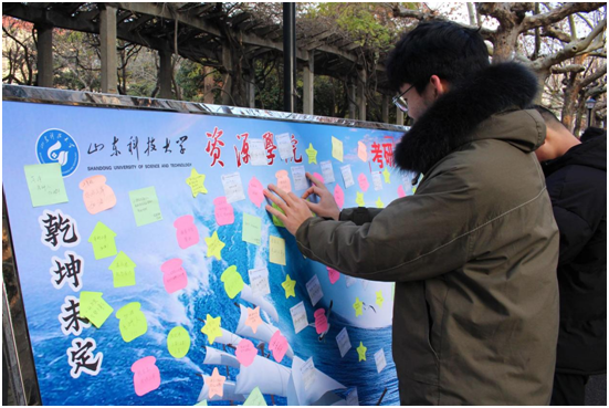 “学长学姐你最棒!考研必胜!”“愿你研途熠熠生辉!”……同学们纷纷驻足,为考研学子留下暖心祝福。