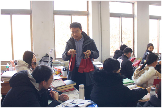 全体辅导员老师来到考研自习室,为考研学子们送上精美福袋与暖心关怀。