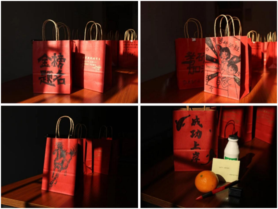 用心用情用力,精心设计了包含“五个一”在内的考研礼包,即装满一个福袋、送上一份祝福、抽取一次盲盒、填上一处理想院校、悬挂一批励志条幅。