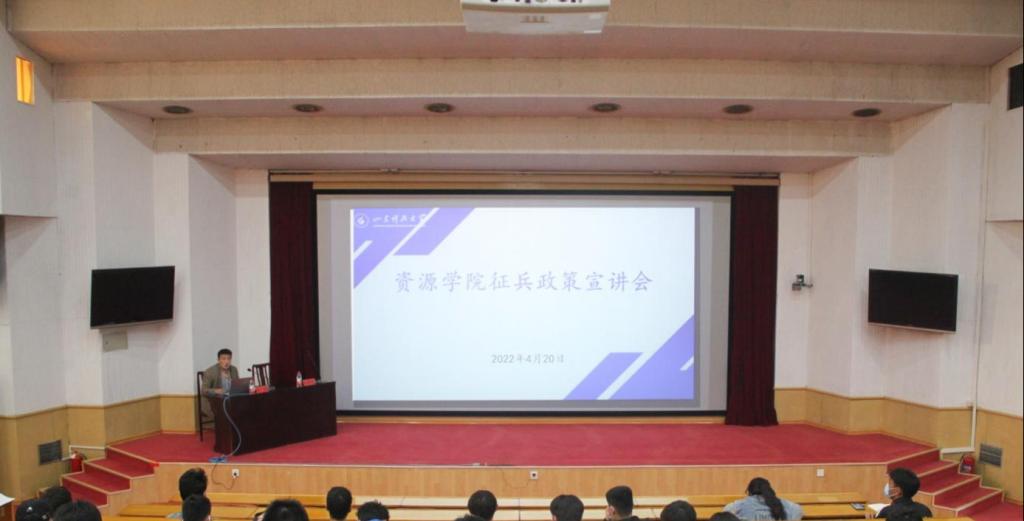 在四号楼报告厅举办征兵政策宣讲会。会议邀请校区学团工作部国防教育中心李科老师担任主讲,学院辅导员卢业美主持,学院各年级学生代表参加。
