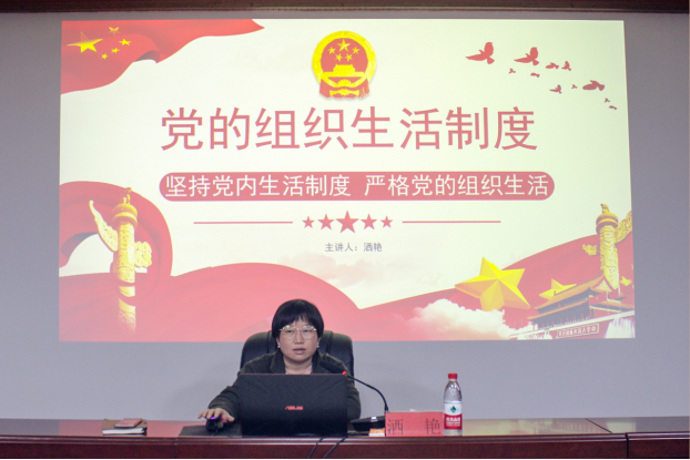 学工办主任、团委书记、学生第一党支部书记洒艳在2号楼201会议室,为学院第36期党员发展对象讲授“党的组织生活制度”专题党课。