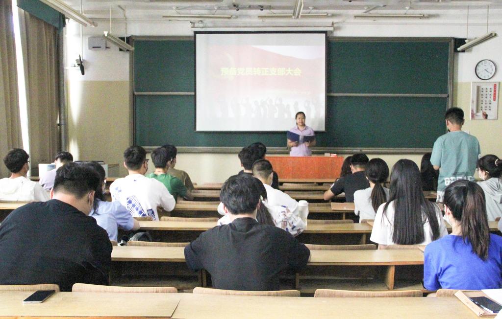 学生党支部召开预备党员转正大会。大会分别由学生第一、第二、第三、第四党支部书记洒艳、牛会功、卢业美、张运忠主持,学生党支部全体党员参加。
