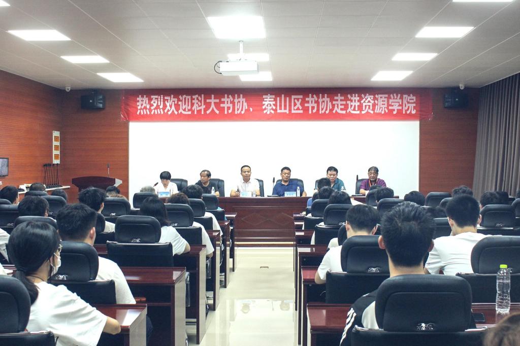 在2号楼201举行“迎七一,传统文化进校园之书法进大学”暨科大书协、泰山区书协向资源学子赠送书法作品活动。活动由学院学工办主任、团委书记洒艳主持,学院党委副书记副院长程家国、科大书法协会代表、泰山区书法协会代表出席活动。