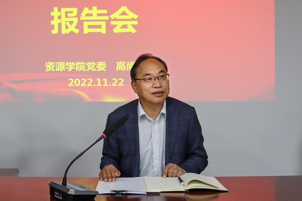 召开党的二十大精神宣讲报告会,学院党委书记高尚宇为全体教职工作党的二十大精神宣讲报告。