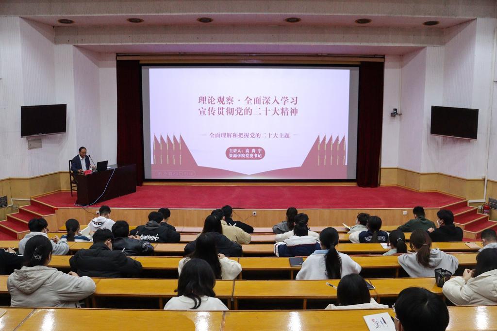 党委书记高尚宇在四号楼报告厅做“全面理解和把握党的二十大主题”报告,该报告同时作为学院第37期入党积极分子培训班党课第一讲。
