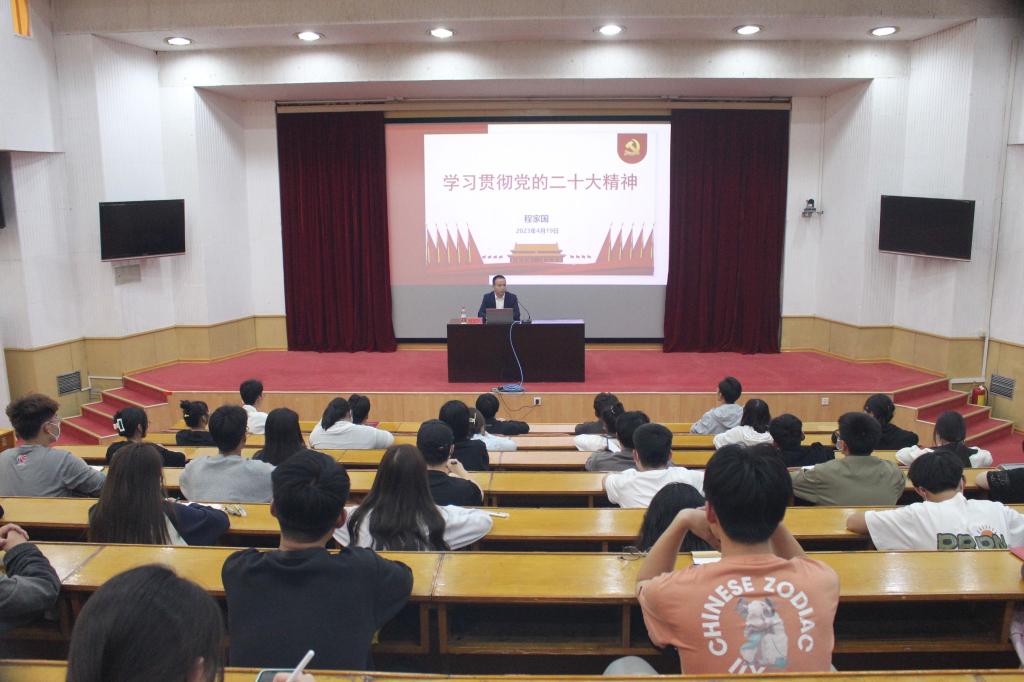 在四号楼报告厅举办2023年学生干部培训班第二讲。学院党委副书记、副院长程家国主讲,学院主要学生干部参加。
