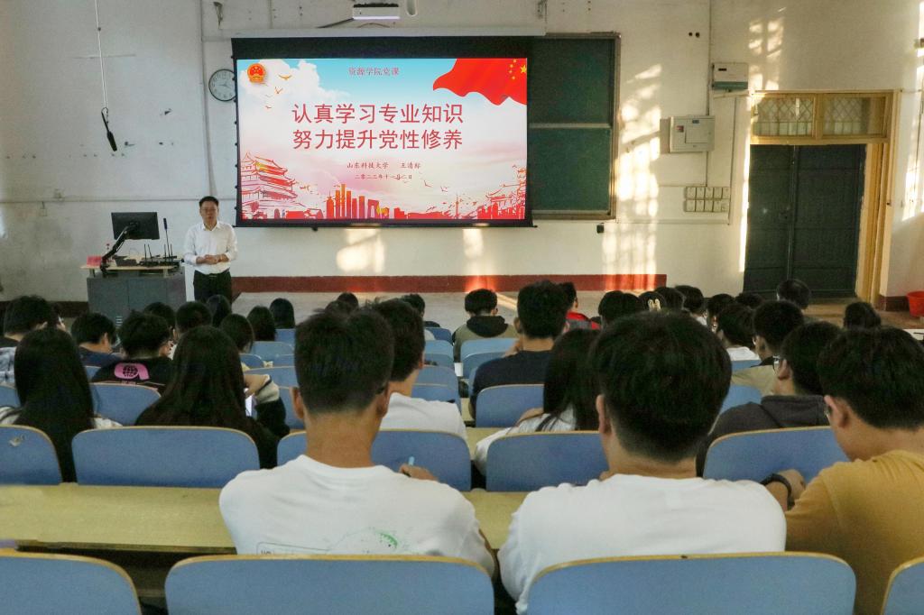 院长王清标在西校园1A107为入党积极分子讲授“认真学习专业知识 努力提升党性修养”专题党课。