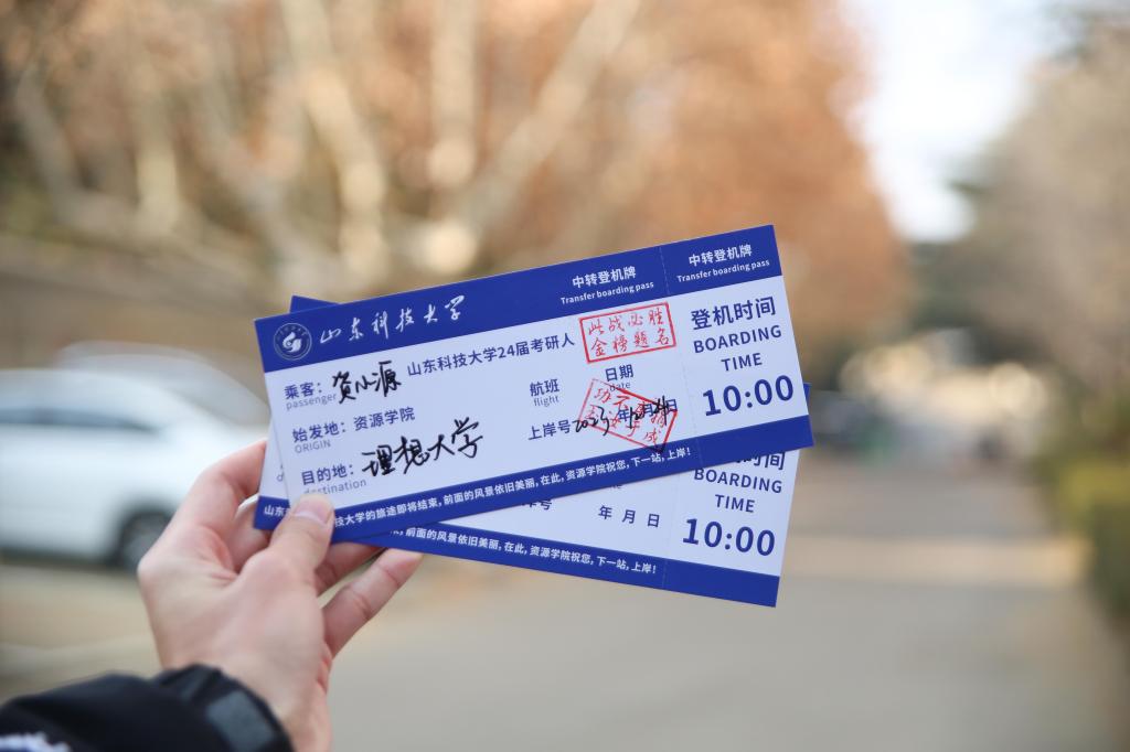 一张张记载着人生旅途的机票被送到考生手中,温暖人心,尽显真情。期待着考研学子将机票变成最心动的那份录取通知书!