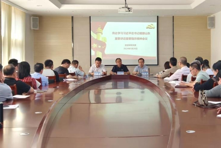 于东校园1号楼501会议室召开全体教职工大会。学院党委书记高尚宇主持并传达学习习近平总书记视察山东重要讲话重要指示精神、习近平总书记在企业和专家座谈会上的重要讲话精神以及省委常委会扩大会议、全省领导干部会议精神。学术副院长王辉传达了罗公利书记在学校领导干部工作会议上的讲话精神。