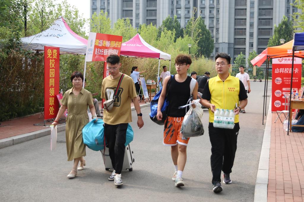 礼堂前、宿舍楼内,100余名志愿者为新生搬运行李、指引方向、解答疑惑。那一抹抹明亮的黄色志愿马甲在校园穿梭,热情周到的服务让新生感到无比温暖。