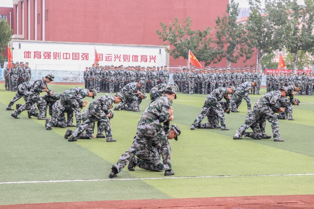 受阅方队以饱满的斗志、昂扬的姿态,迈着铿锵有力的步伐,依次走过主席台。他们眼神坚毅沉着,步伐整齐划一,口号雄浑有力,充分展现了资源学子勇往直前、拼搏奋进的精神风貌。展示环节,新生二连的军体拳表演更是将气氛推向高潮。在教官的精准指令下,全体同学迅速进入状态,队列严整,动作刚劲有力,气势如虹,彰显了资源新生奋发有为的青春风采。