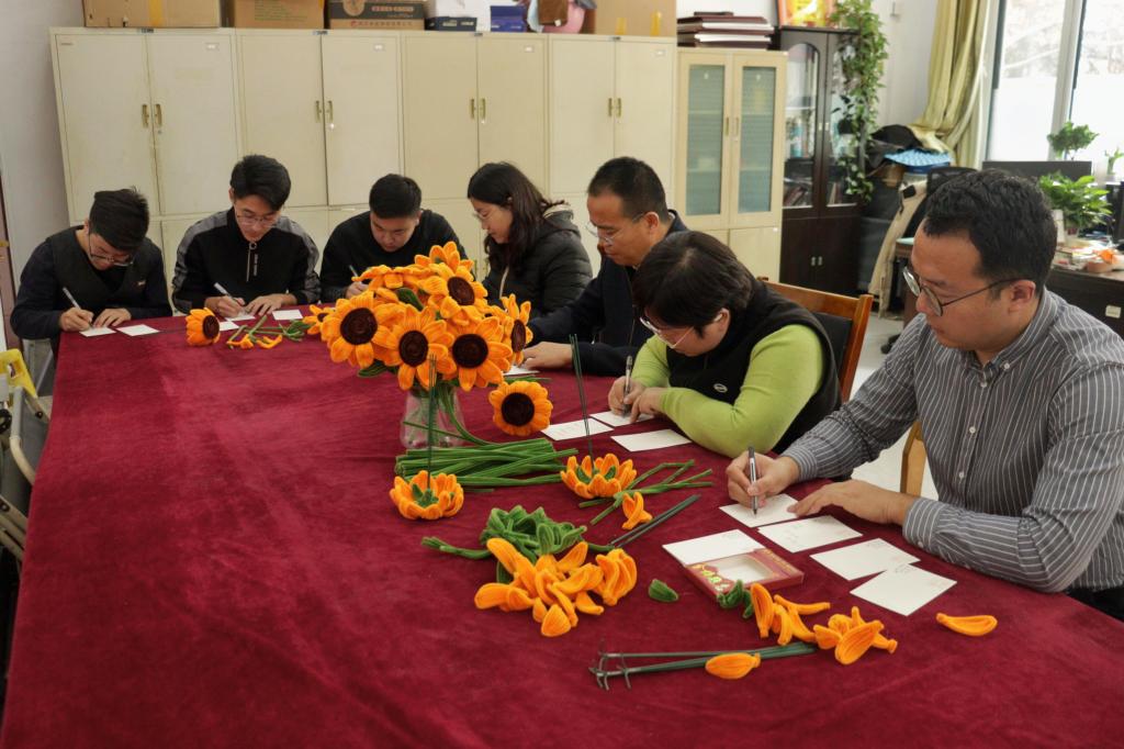 束束向日葵,诚意拳拳,寓意着向暖阳、“一举夺魁”。考研学子放下手中紧锣密鼓的学习任务,接过一束束鲜艳夺目的葵花,脸上不禁露出了久违的轻松与惬意的笑容。“这份特殊的礼物,就像冬日里的一缕温暖阳光,照亮了我的内心深处,给予了我无穷的力量和勇气。”考研学子李雅娜说道。
