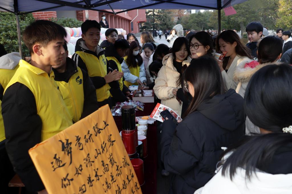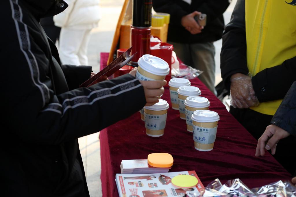 一号楼门前的“上岸茶铺”活动现场,茶香袅袅,咖啡醇浓。这是学院为考研学子精心打造的心灵驿站。活动现场,沁人心脾的热茶、“幸运咖”提供的丰富礼品被一一送到考研学子的手中,让大家在初冬感受到了来自学院的关怀和温暖,坚定了考研必胜的决心和信心。一位学子开心地说道:“上岸茶铺活动与幸运咖携手,别出心裁,仿佛为考研之路铺上了幸运的红毯,我定能顺利抵达成功的彼岸。”