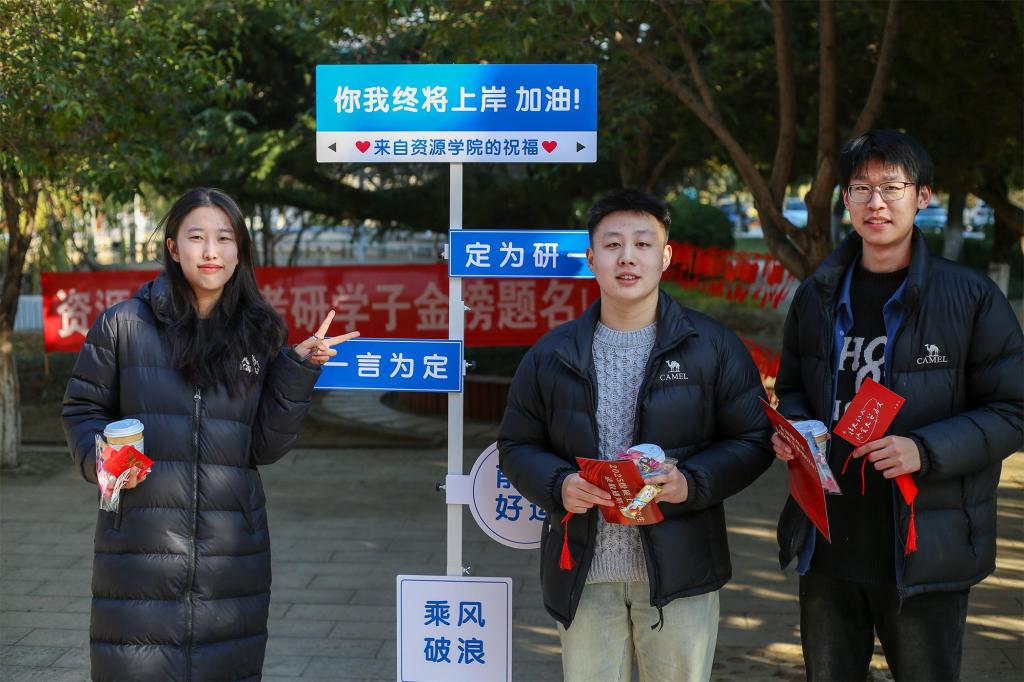 对即将跨入考场的考研学子最真切的祝福与期待。大家纷纷来到路牌前驻足留念,或展露笑颜,或目光坚毅,用相机定格下了这一段奋斗旅程中的美好片段。