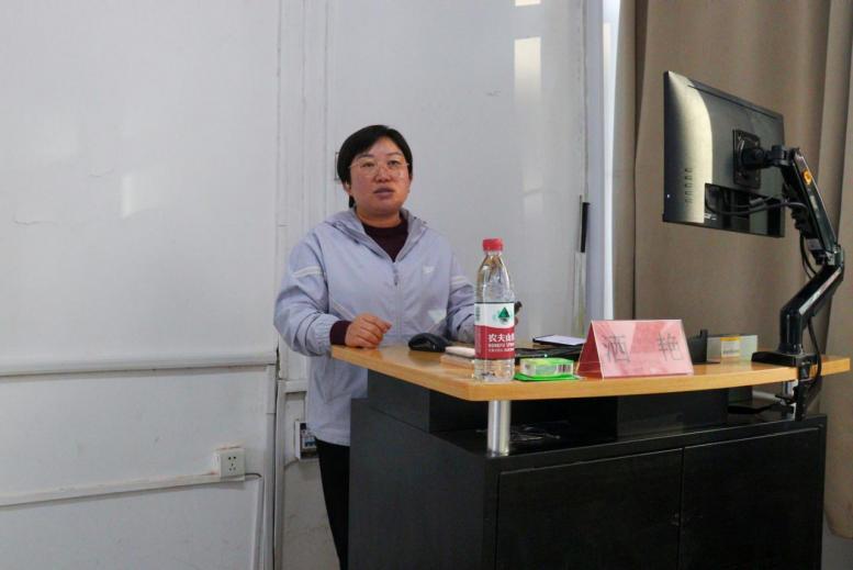 在1A107召开“初心如磐,奋楫笃行”主题团课。学院学工办主任、团委书记洒艳担任主讲人。