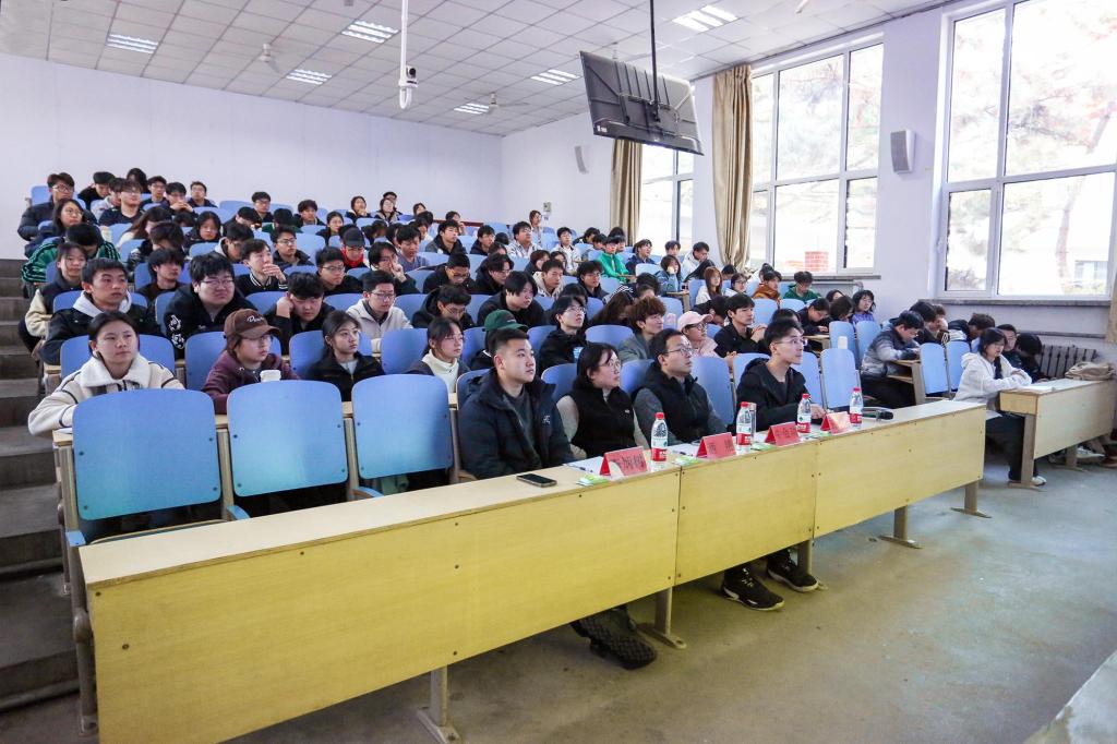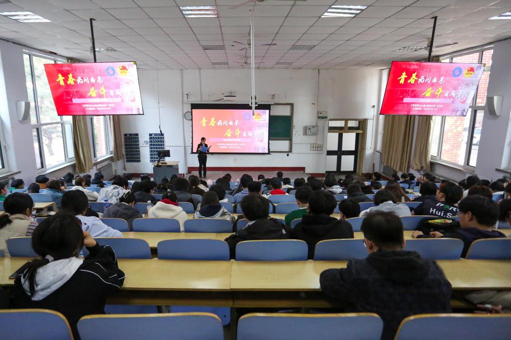 在1A107举办“五四红旗”团支部答辩会。学院辅导员担任评委,全院8个候选团支部参加答辩。