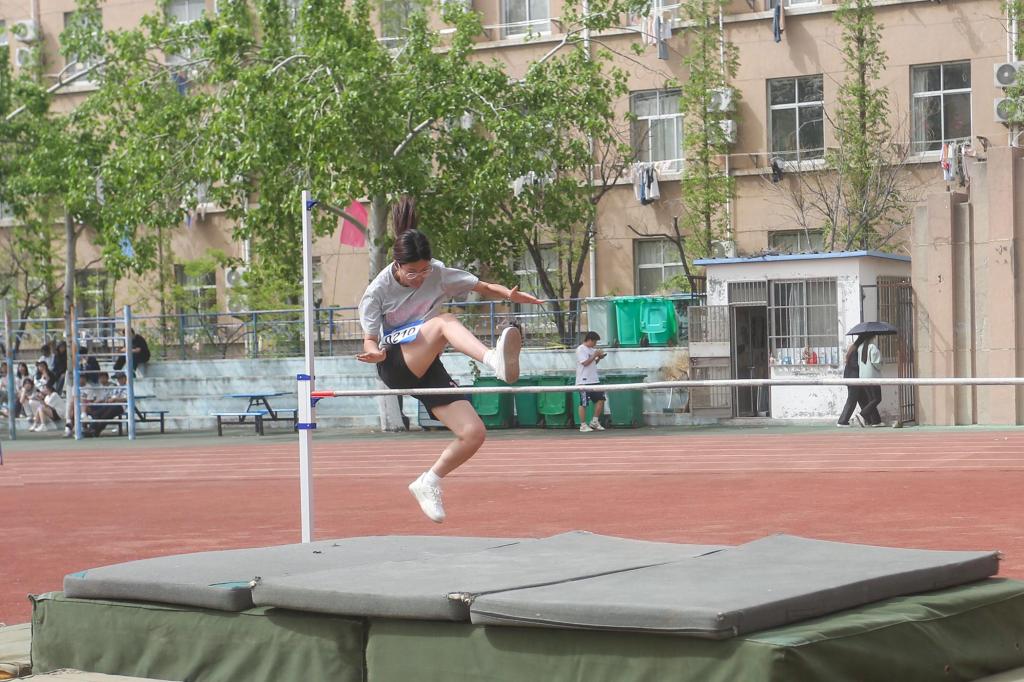 选手们助跑、加速、起跳,动作一气呵成,轻盈越过横杆,引得观众席上一片喝彩。经过激烈的比拼,防灾减灾2024级3班周俊宇、工程管理2024级1班刘笑瑜、工程管理2023级2班王文娟分别取得男女甲组、女子乙组跳高第一名的好成绩。