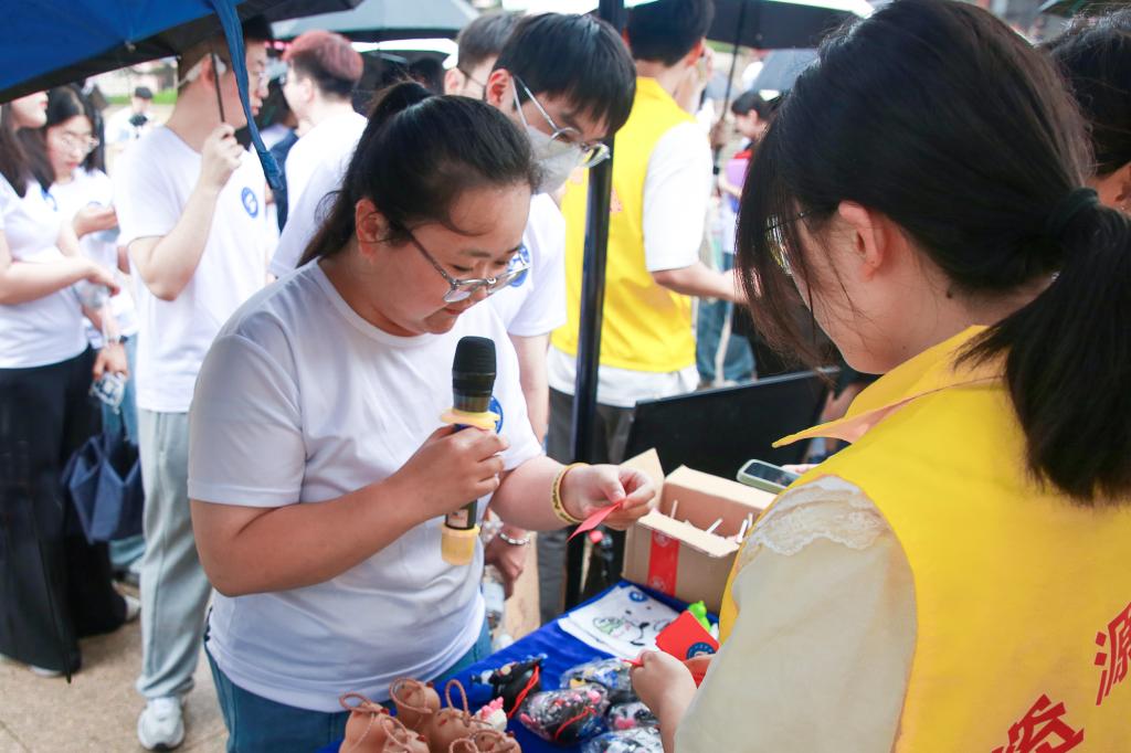 一枚枚精致的纪念徽章,一个个充满惊喜的钥匙扣盲袋,还有封藏着干花与校园诗意的DIY书签,一方方拓印,毕业生们亲手印制的趣味文字……都将校园记忆精心打包。这些独一无二的小小信物,如同满载着珍贵回响的时光胶囊,将化作前行的温暖力量,陪伴毕业生启程。愿此去一路繁花相伴,前程似锦,在更广阔的天地里绽放属于他们的璀璨光芒!