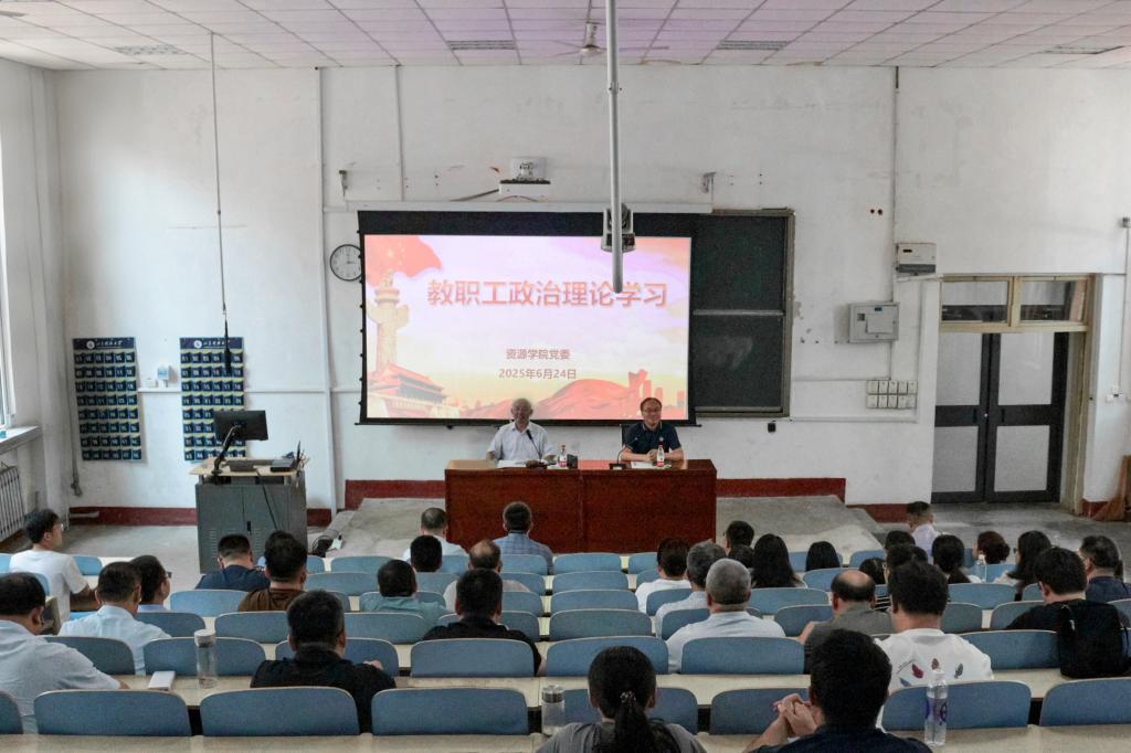 在1A107开展全体教职工政治理论学习。学院党委书记高尚宇主持学习并讲话。