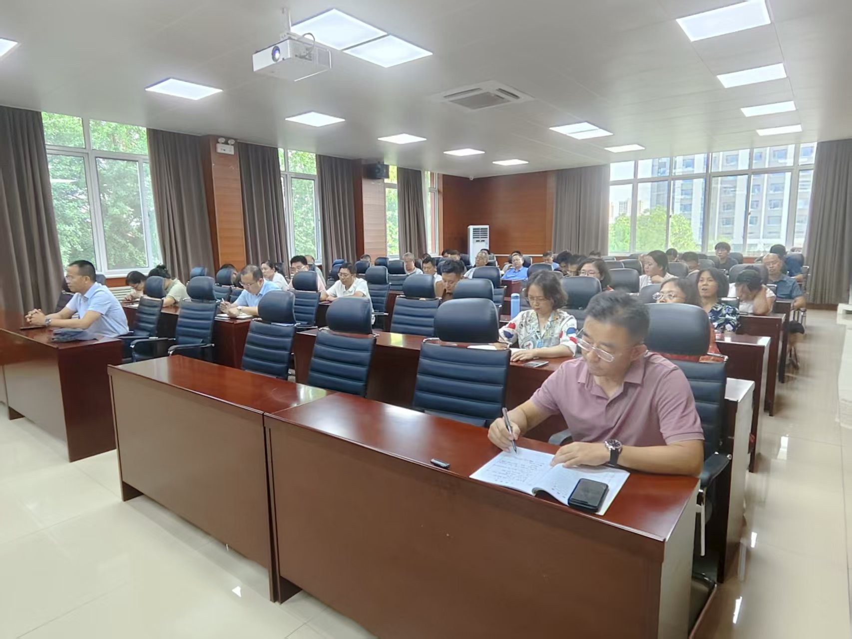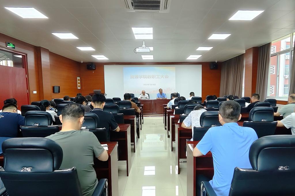 在2号楼201会议室召开全体教职工大会,总结上学期工作,部署暑期及新学期重点工作。会议由校区领导贾宏俊、学院党委书记高尚宇主持,全体教职工参加。