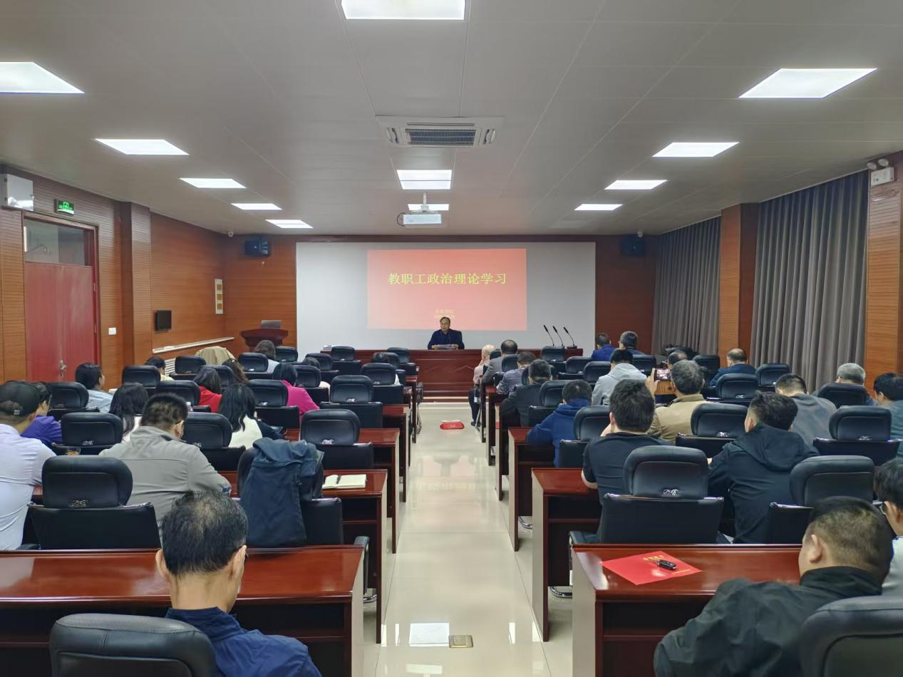 在2号楼201会议室举行全体教职工政治理论学习。学院党委书记高尚宇主持学习。