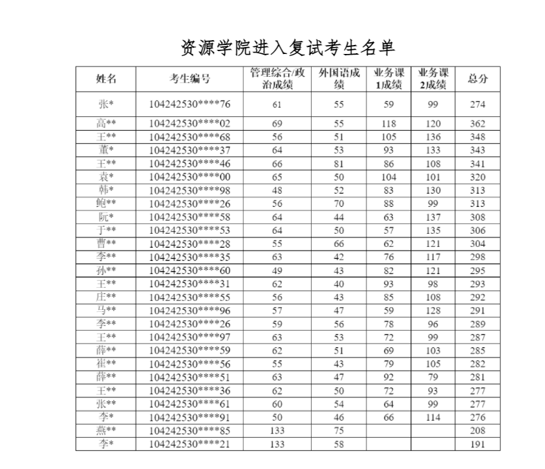 进入复试考生名单
