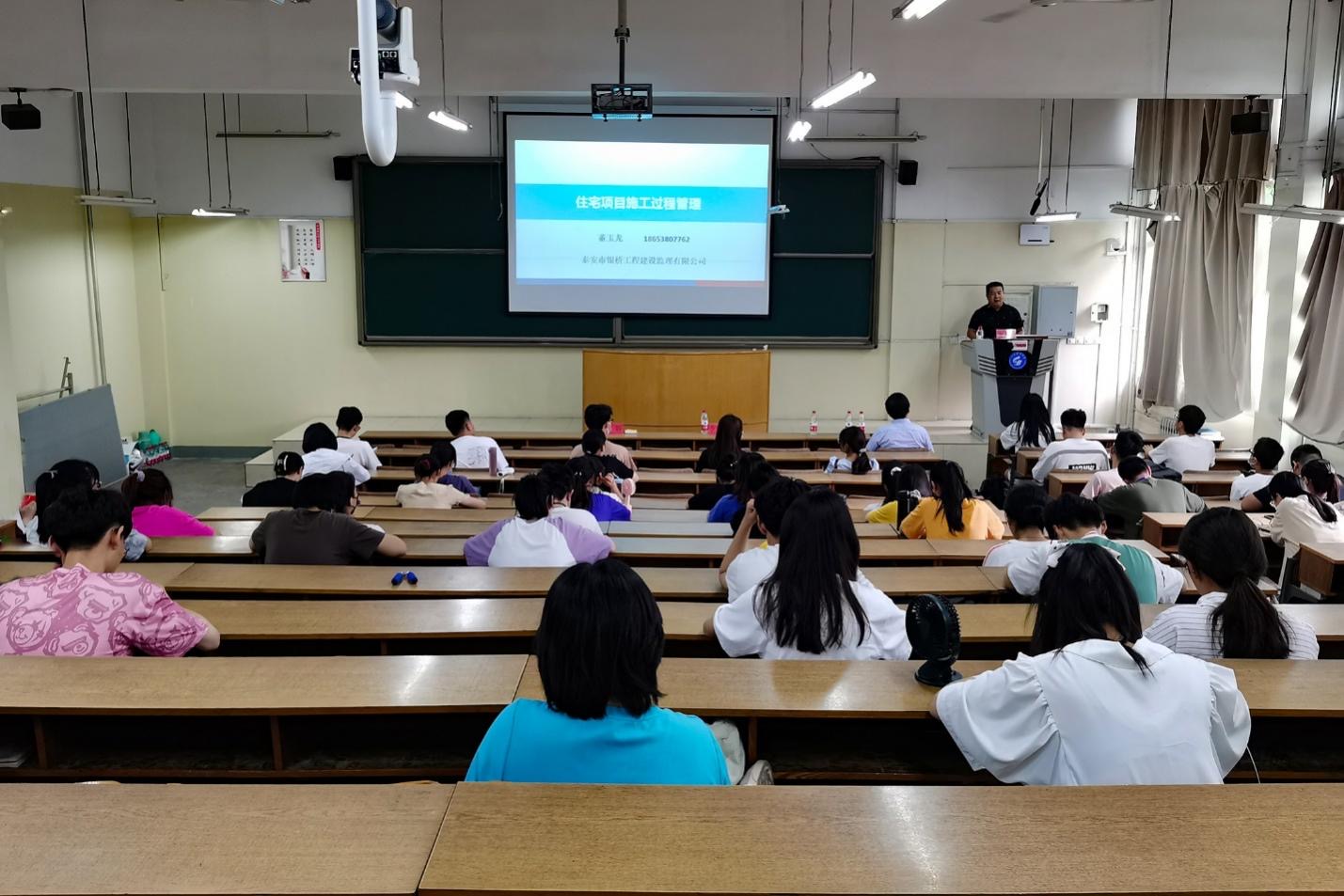 本次讲座中,董玉龙从国家工程需求、学院素质培养、未来市场趋势、职业资格要求和工作经验五个方面出发,为学生们讲解了工程管理专业未来的职业发展前景。随后,他结合自身工作经验,详细地讲述了在住宅项目施工过程中的管理办法。他强调,工程建设是一个庞大且精密的工作,要做到精心规划,精研方案,精细管理。