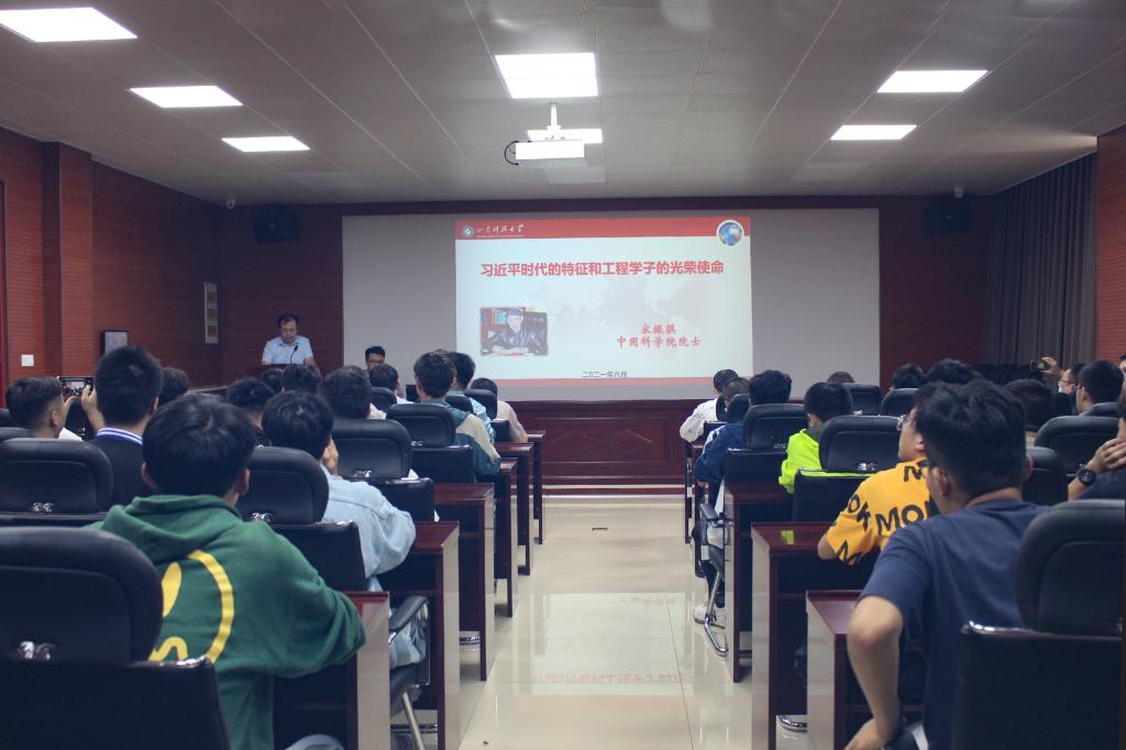 的建校历史和发展历程,动情讲述了自己早年艰辛的求学之路、当选院士后的科研点滴,勉励同学要珍惜韶华、奋发有为,以一往无前的奋斗姿态、风雨无阻的精神状态,建功新时代。