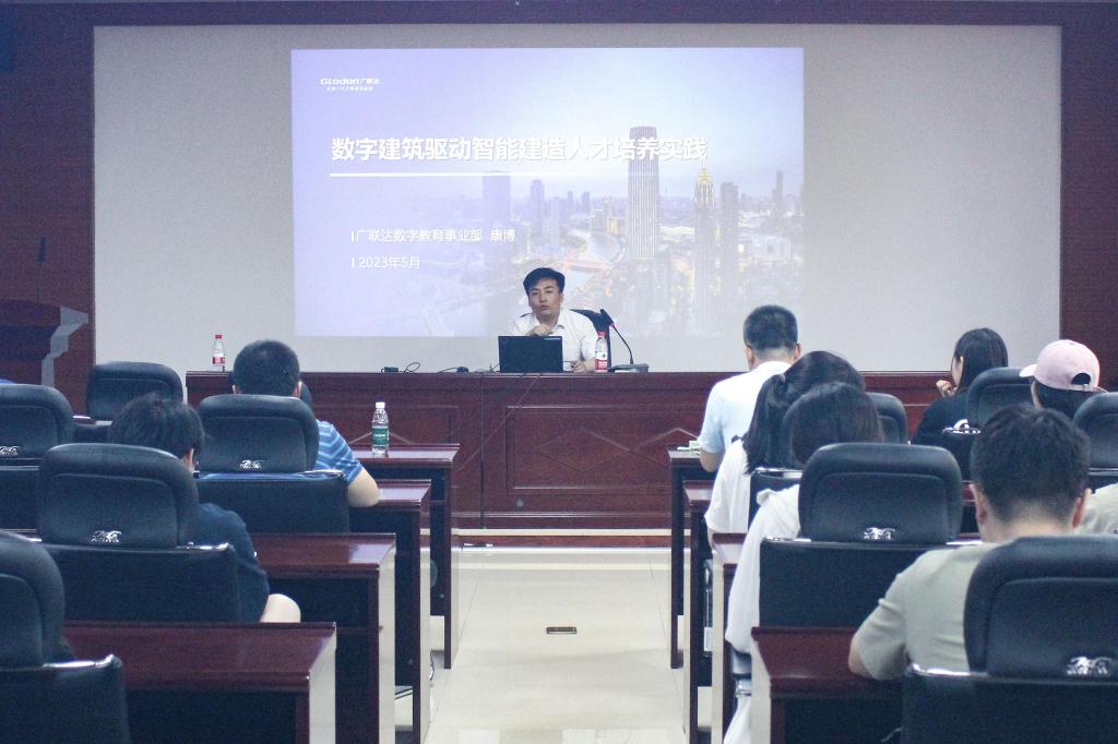 在二号楼201会议室举办数字建筑驱动智能建造人才培养实践研讨会,广联达数字教育事业部高级工程师康博主讲,学院相关专业教师、研究生及本科生学生代表参加。